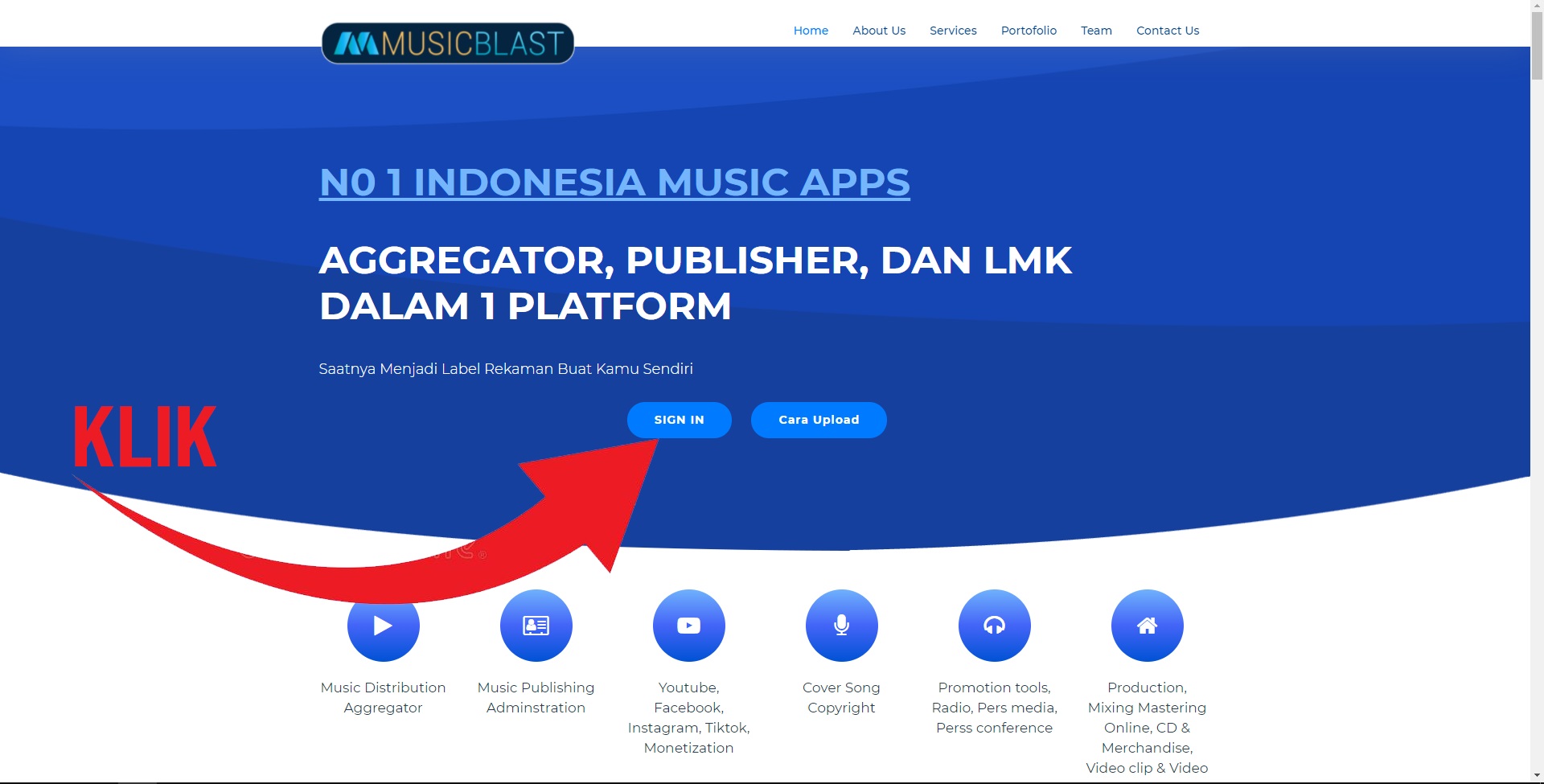 ➔ Masuk ke web musicblast.id kemudian klik sign in