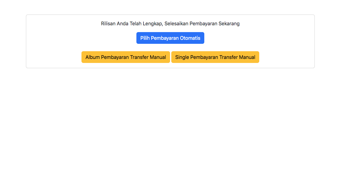 - Status ‘Sudah bayar dan terkonfirmasi’ : Bukti pembayaran terkonfirmasi valid, dan submitan anda dalam pengecekan Metadata / Audio / Artwork (kurasi manual oleh team A&R)