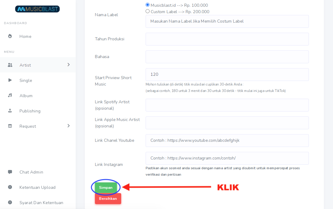 Dibawah ini cara upload single/album di aplikasi musicblast